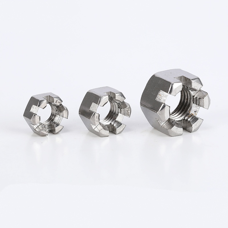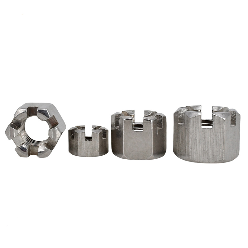ROSIO Victoria Nucis Nucis Slot sunt exigere mole signa ita fit ius opus proprie. Communis includit ISO (IV) CLXI, Laudate CMXXXV et specifica aerospace signa quasi nasm aut MS. The sizes cover things like the hex width (for the wrench), thread size and pitch (like M10x1.5 or 1/2"-13), total height, crown diameter, and slot width and depth. It is crucial to select slotted crown nuts that are precisely sized to ensure a good fit with the mating component, effective tightening, and precise alignment with the hole reserved for the bolt or stud.