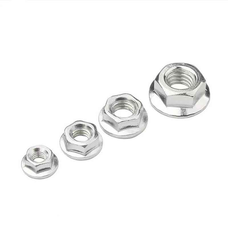 Maximum efficientiam hexagonorum nuces cum LABIUM communia signa internationalia sequuntur quae suas exactas magnitudinum et proprietatum mechanicarum constituunt. Signa praecipua ISO 4161 (DIN 6926) includunt et ASME B18.2.2. Magnitudines res tegunt sicut hex latitudinem per plana (AF), altitudinem totam, diametrum LABRICIUM, et linum magnitudine / picis (sicut M12x1.75). Diameter LABIUM est maior quam pars hex, quam ob rem adiuvat latum onerarium. Communes stamina metrica et imperialia magnitudinum genera veniunt, plerumque ab M5/M6 usque ad M36, vel 1/4" usque ad 1.5", ut variis technicis necessitatibus operantur.