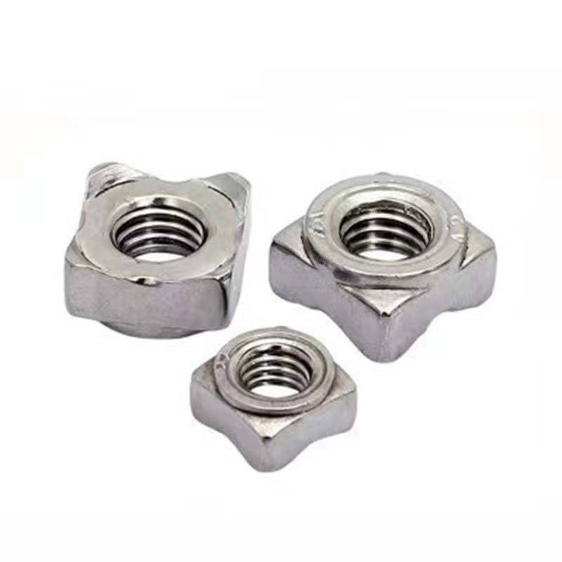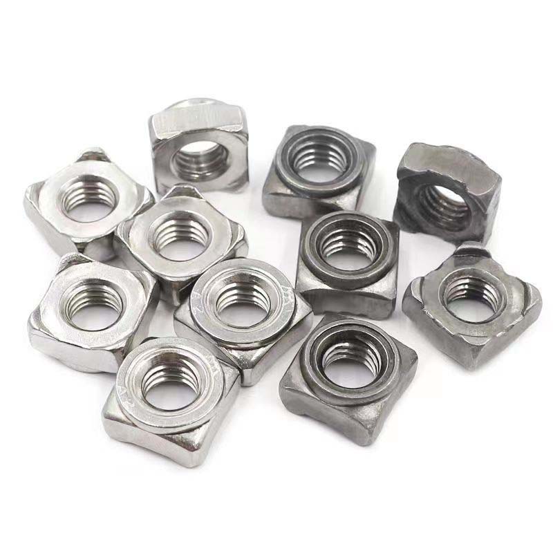 Unciae magnae nuces quadratae solidatae sunt faciles ad pactionem. Expertus operarius instrumento glutino tenet et partes elevatas in quattuor angulis calefacit, tunc in laminam ferream vel in aliis operibus metallis firmiter conflari potest. Quia quadratum est, non facile glutino gyratur, et stabilior est quam rotundis nucibus.