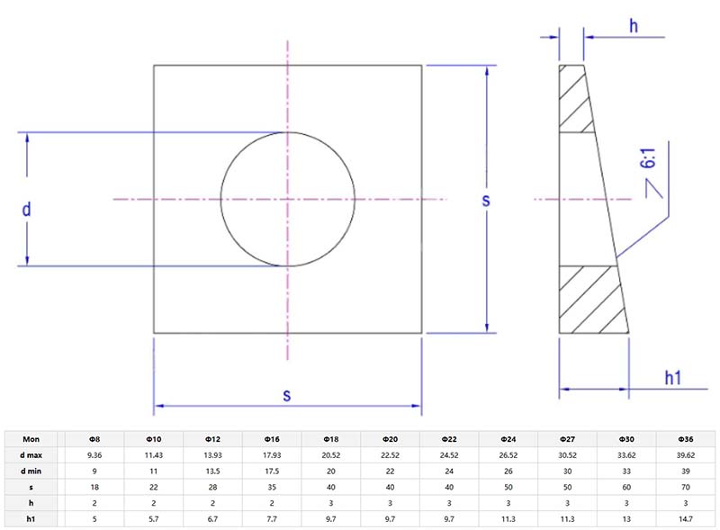 Quadratum angulus washers quadratum angulos et washers per foramina in medio. Sunt connexa cum nucis et seras ad augendam contactus superficiem, dispergere pressura et ne scalpit in nexu superficiem. Sunt plures materiae eligere ex Xiaoguo® Factory.